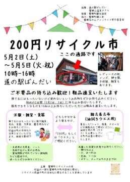 道の駅ばんだいにて、不要品を有効活用する「200円リサイクル市」を開催いたします。